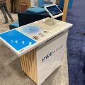 Custom features, such as branded visuals, interactive screens, custom cabinets, a coffee bar, and a sound system, were incorporated to create an inviting and dynamic environment for the booth’s visitors. A gaming area and plant section were also included, adding an engaging and visually appealing touch to the design. The booth's extrusions were wrapped to achieve a wood look, complementing the overall aesthetic. Dedicated presentation areas and enquiry counters with touch screens enhanced interactivity. The project resulted in a visually stunning and highly functional exhibit that exceeded expectations, all while staying within budget and meeting the tight deadlines for the IWA Toronto 2024 exhibition. The booth’s success was evident in the positive feedback from both the client and attendees.