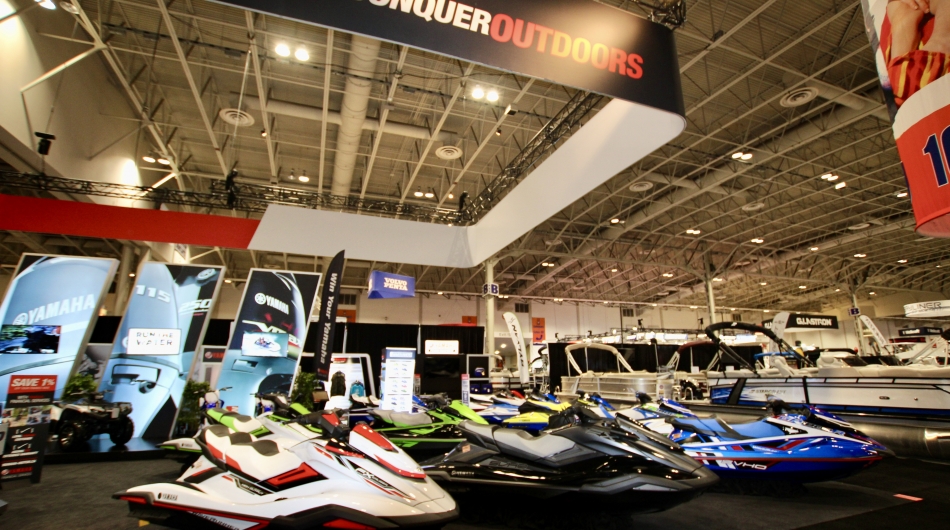 Fabricated through our Exhibit Connections division, this exhibit featured large visuals, huge overhead graphics, and lots of space allow this booth to harness the opportunity of attending this event annually in Toronto, Canada. Yamaha was spread across 3 spaces at the event for a total of 14,000 sq. ft. of exhibits for the spacious display of their products. Discreet meeting space in the back of the large corporate area allowed dealers and reps an opportunity to meet privately or unwind from a busy trade show day.